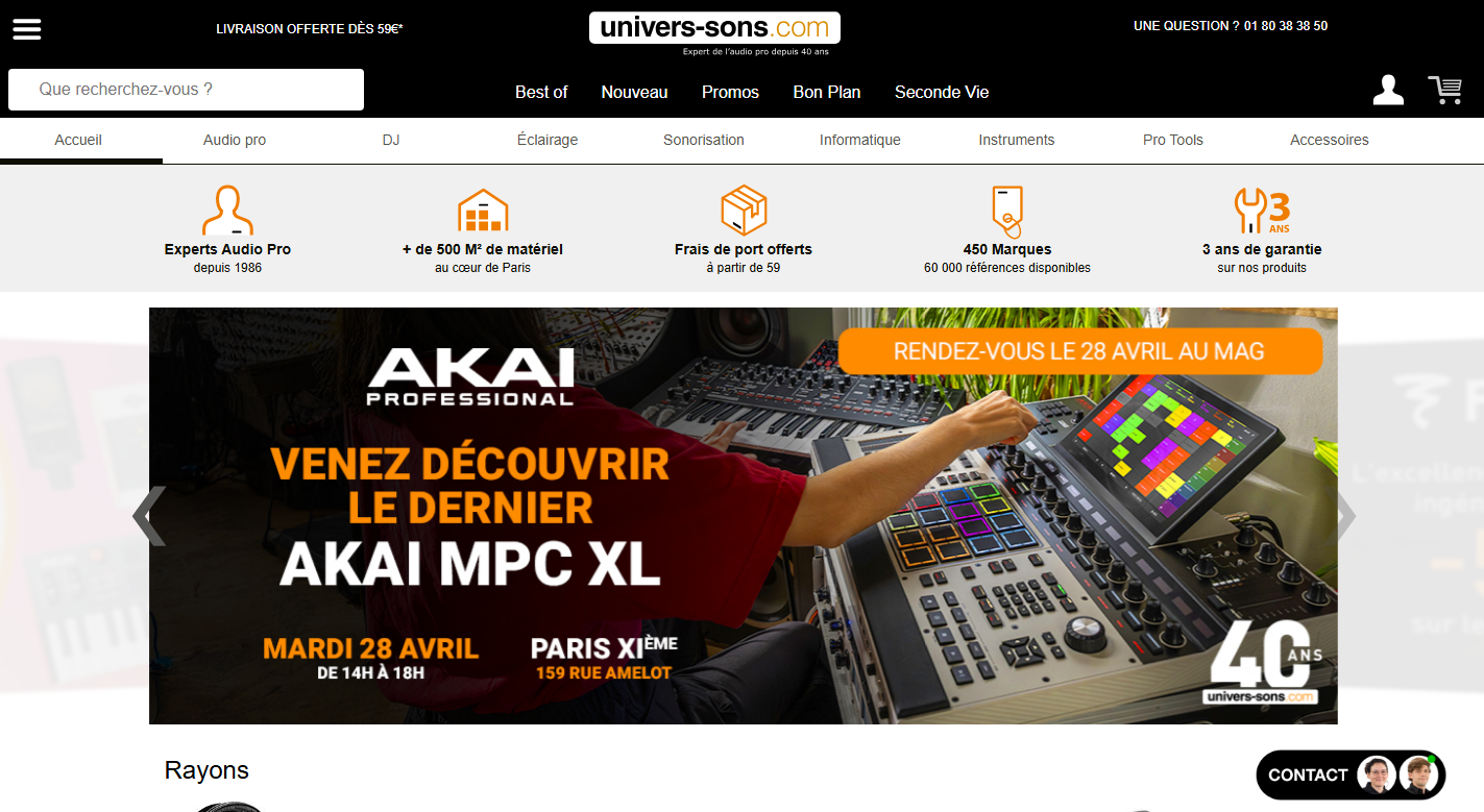 Contact : https://www.univers-sons.com/a-propos/nous-contacter.html